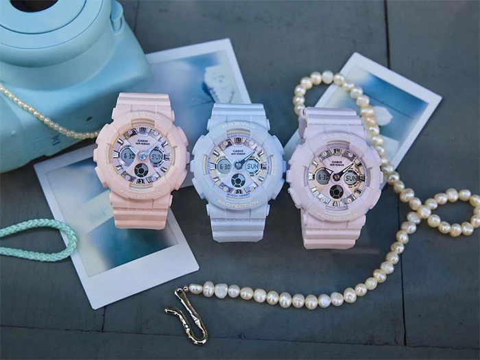 Противоударные кварцевые женские наручные часы Casio BA-130WP-2A коллекции Baby-G с двойной индикацией времени.
