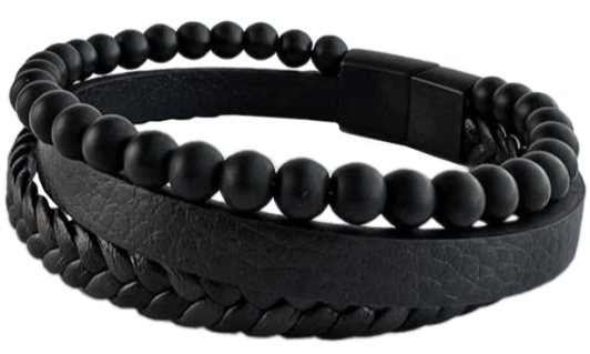 Все металлические элементы браслета, выполненные из прочной нержавеющей стали, обработаны ионным напылением черного цвета. Эта технология не только придает браслету стильный и современный вид, но и обеспечивает высокую устойчивость к царапинам, коррозии и другим внешним воздействиям, гарантируя долговечность аксессуара.