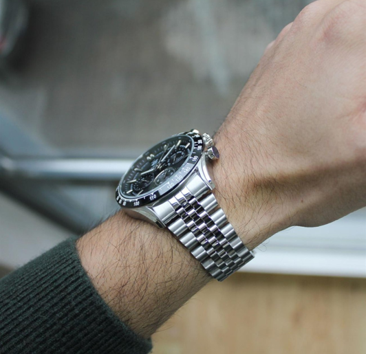 Серебряный браслет в тон и черный циферблат — идеальное сочетание функциональности и эстетики. Прочные и изысканные часы.