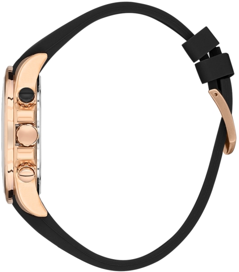 Корпус часов изготовлен из прочной нержавеющей стали с элегантным IP-покрытием золотого цвета, что придает часам роскошный вид и обеспечивает устойчивость к царапинам и повреждениям. Черный силиконовый ремешок обеспечивает максимальный комфорт при ношении, идеально подходя для активного образа жизни.