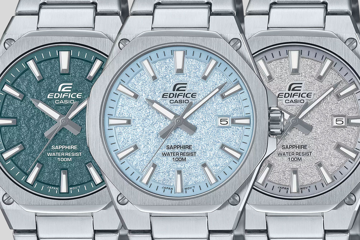 Часы Casio Edifice EFR-S108DE-3A - свежий релиз 2025 года в коллекции Edifice из серии EFR-S108, новая расцветка в стальном октагоновом корпусе с необычным фактурным циферблатом ледяного оттенка, покрытым сапфировым стеклом.
