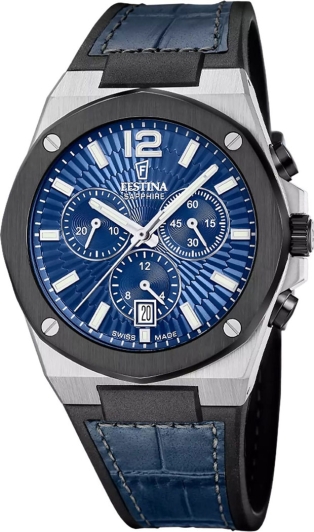 Мужские часы Festina F22003/2 — это спортивный хронограф с ярко выраженным характером, созданный для тех, кто любит динамичный, но аккуратный дизайн.