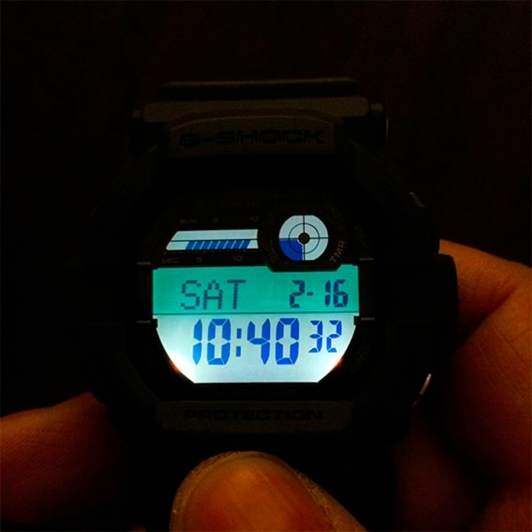 - диодная подсветка циферблата с функцией авто (включается при наклоне часов на 40°) и возможностью выбора времени свечения (1.5 или 3 секунды);