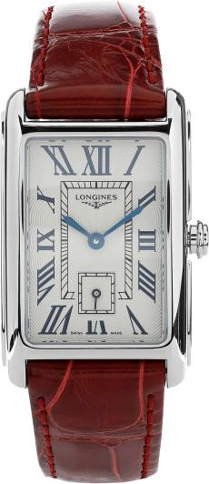 Прямоугольный корпус этих швейцарских часов будет по особому изящно смотреться на хрупком женском запястье. Часы Longines DolceVita L5.512.4.71.5 с прямоугольным стальным корпусом.
