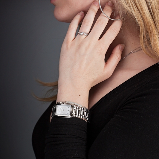 - аппликация часовых индексов и стрелки с серебристым покрытием и полировкой.