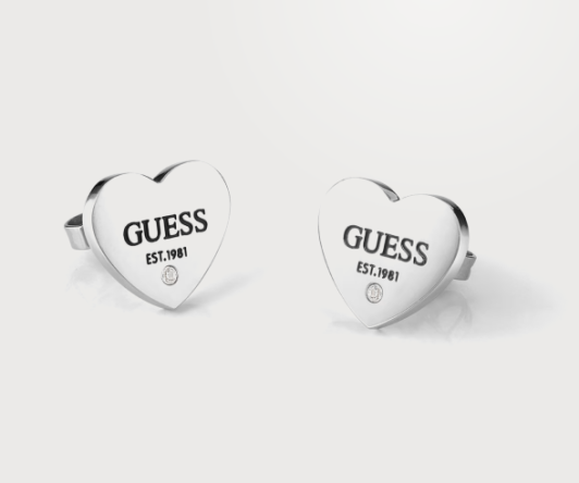 Серьги имеют форму сердца с идеально гладкой глянцевой поверхностью. Такая отделка создает красивый блеск, который притягивает взгляды. На лицевой стороне каждого сердца присутствует четкая и стильная надпись "GUESS EST.1981". Эта гравировка отсылает к году основания бренда, подчеркивая его богатое наследие и эксклюзивность.